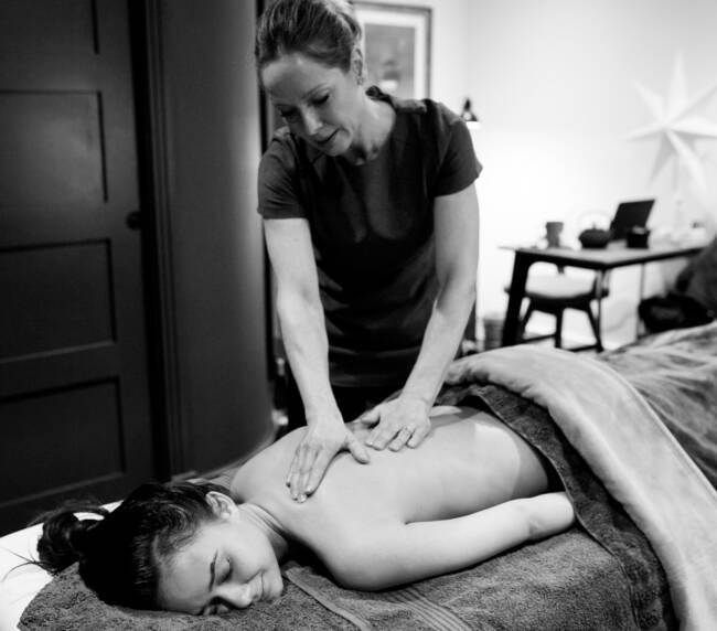 Soothing full body massage for meridian and energy balance using uplifting essential oil blend of petitgrain, cedar wood, juniper, black pepper, lemon, thyme, cinnamon, ginger & rose.